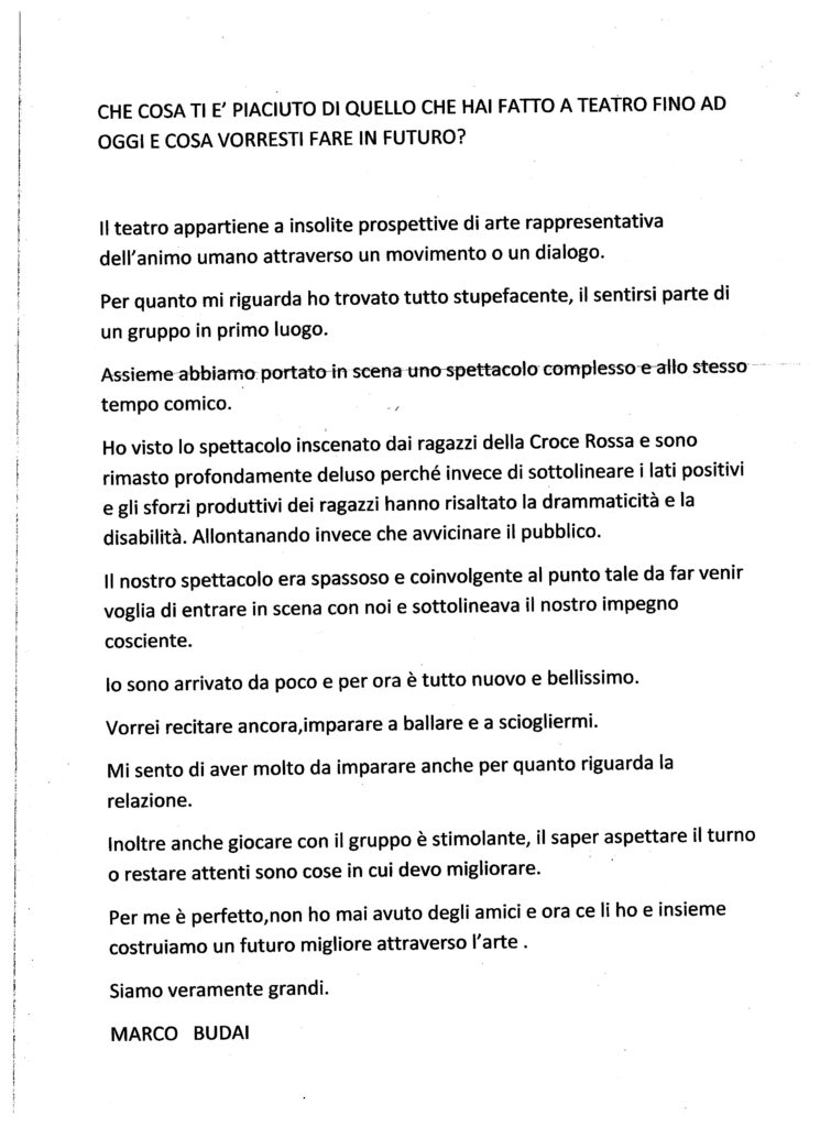 UN PENSIERO DI MARCO BUDAI SCRITTO CON LA C.F.